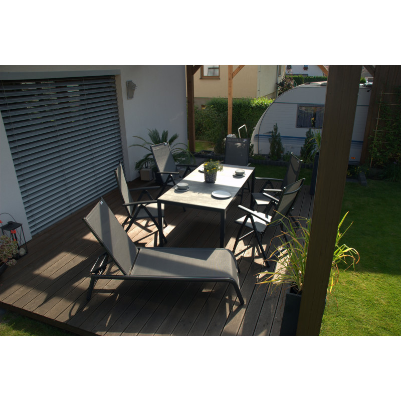 Lehátko VENEDIG antracit od značky DOPPLER má velmi stabilní dvojitou hliníkovou konstrukci v antracitové barvě. Výplň lehátka je z pevné textilie v tmavě šedé barvě. Díky polohovatelné opěrce zad si můžete lehátko nastavit do několika pozic. Všechny použité materiály jsou nenáročné na údržbu a odolné povětrnostním vlivům.