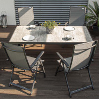 Velikou předností je keramická deska v žíhané šedé barvě. Díky tomu je stůl téměř bezúdržbový a odolný povětrnostním vlivům. Jednoduchý design s neutrálními barvami můžete doplnit našimi ladícími křesly a doplňky značky DOPPLER.