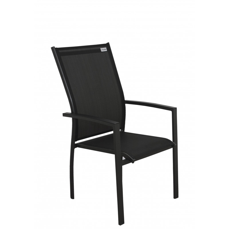 Dále sestava obsahuje 2 stohovací křesla taktéž s hliníkovou konstrukcí a výpletem v antracitové barvě. Křesla je možné stohovat na sebe a tím ušetřit místo.