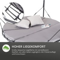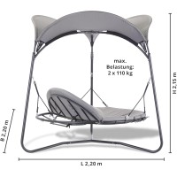 Užívejte si relax na zahradě, terase či u bazénu bezstarostně a uvolněně. Tato luxusní houpací lehátko/houpačka Vám umožní relaxovat a užívat si léto naplno. Robustní rám je vyroben z ocelových trubek a díky práškovému nástřiku je obzvláště odolný vůči povětrnostním vlivům. Snadná údržba polyesterové textilie. Součástí jsou polstry, které promění místo Vašeho odpočinku v oázu klidu. Tvarovaná stříška z jemné polyesterové tkaniny má vodoodpudivou povrchovou úpravu a poskytuje příjemný stín.