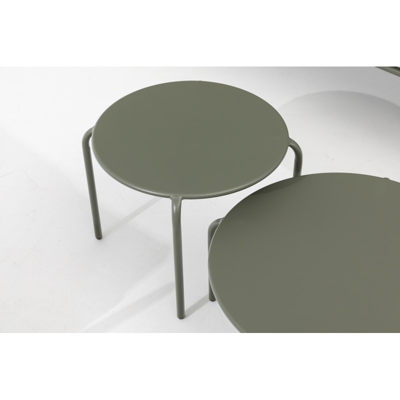 Relaxační sedací souprava Calista na první pohled zaujme svým stylovým provedením. Tento set pro 5 osob má ocelovou konstrukci v temně zelené barvě. Pohodlné sezení zaručí sedací a opěrné polštáře z velice kvalitní outdoorové tkaniny v odstínu šedého melíru. Sestava se skládá ze 3-místné pohovky, dvou křesel a dvou odkládacích stolků.