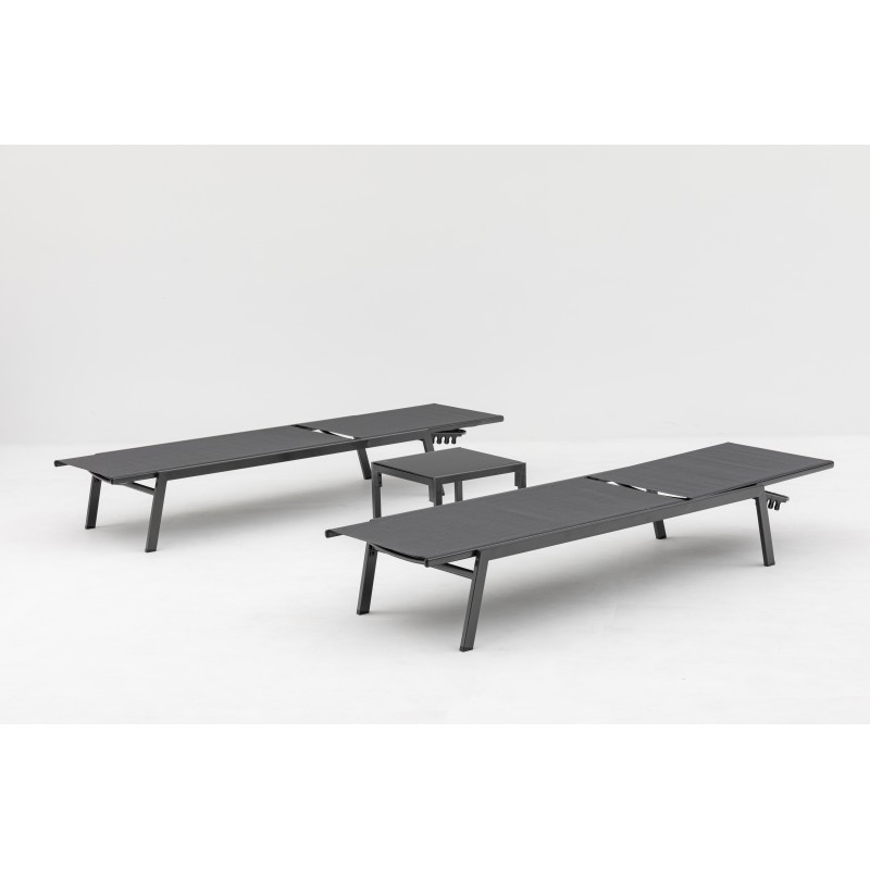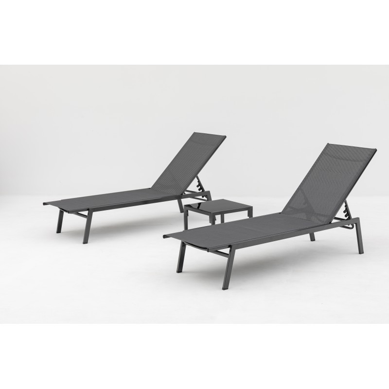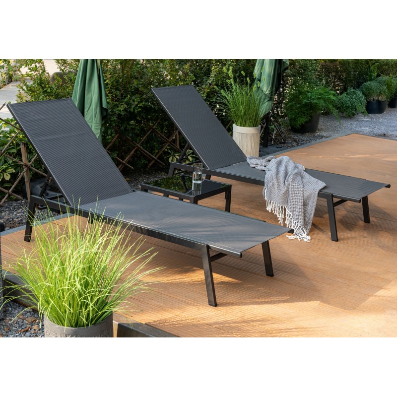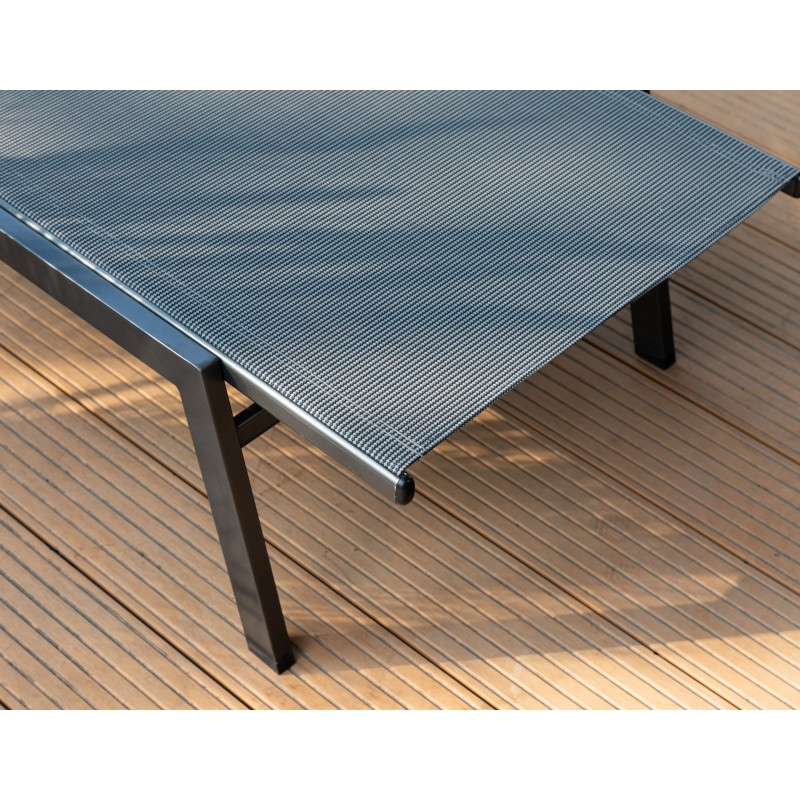 Lehátka disponují pevnou ocelovou konstrukcí v antracitové barvě, která zajišťuje vysokou stabilitu. Výplet z kvalitní tmavě šedé textilie je příjemný na dotek, prodyšný a odolný vůči povětrnostním vlivům. Díky možnosti polohování si snadno nastavíte ideální pozici pro odpočinek, čtení nebo opalování.