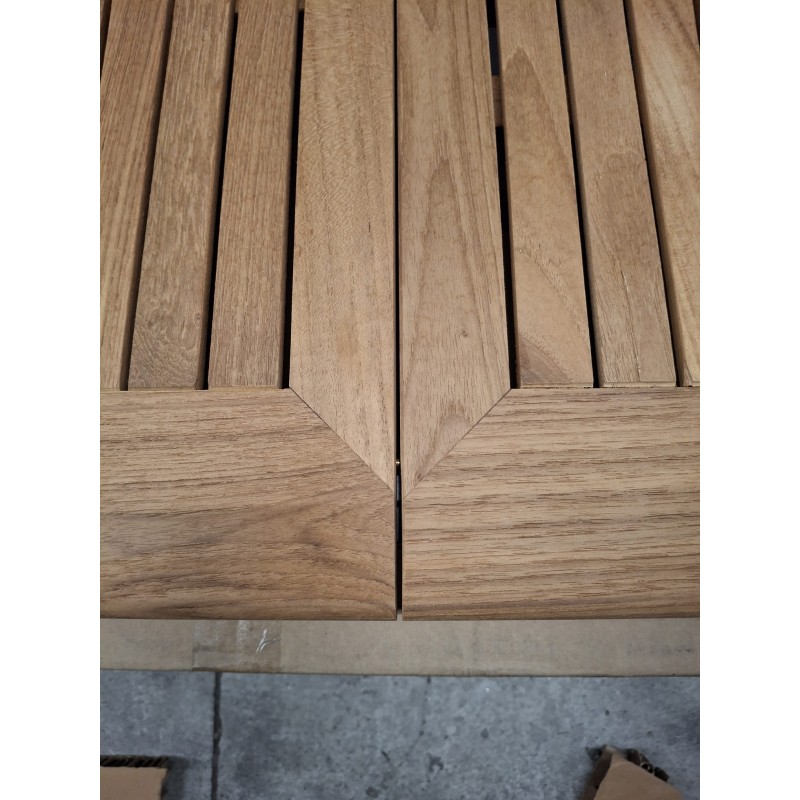 Díky zabudované desce z teakového dřeva lze stůl jednoduše rozložit.