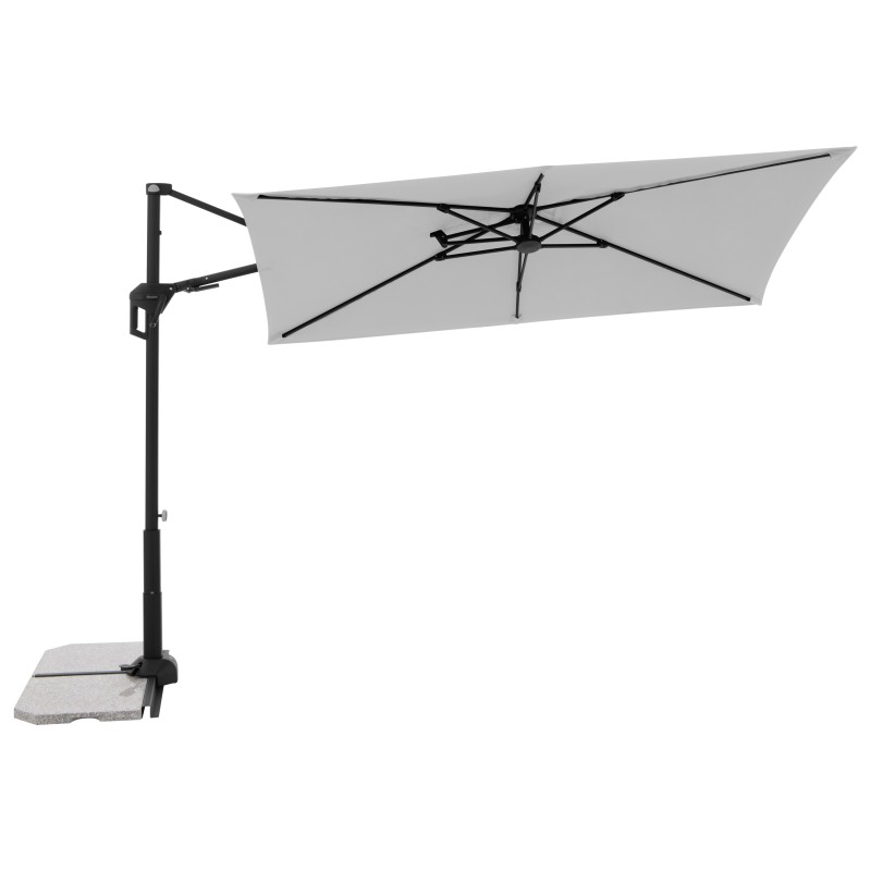 Moderní slunečník s hliníkovou konstrukcí je ideální na balkón či terasu. Snadné a pohodlné otevření a zavření slunečníku díky kličkovému mechanismu. Slunečník je výškově nastavitelný. Dá se přizpůsobit pohybu slunce během dne, otáčí se o 360°, naklápí se axiálně na obě strany a může být nastaven pod úhlem dozadu. Potah je vyroben ze 100% PET recyklované...