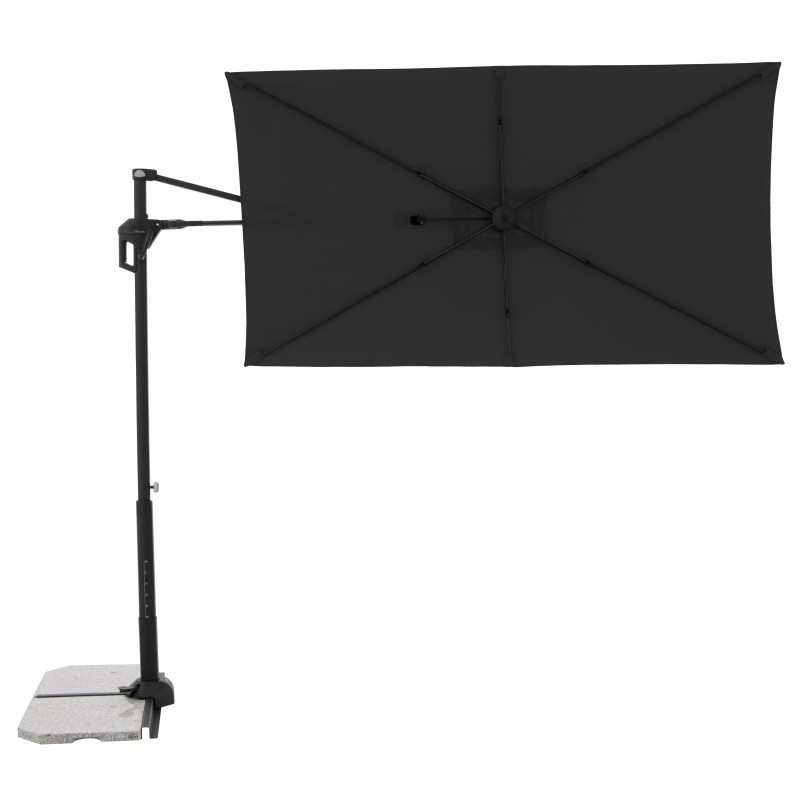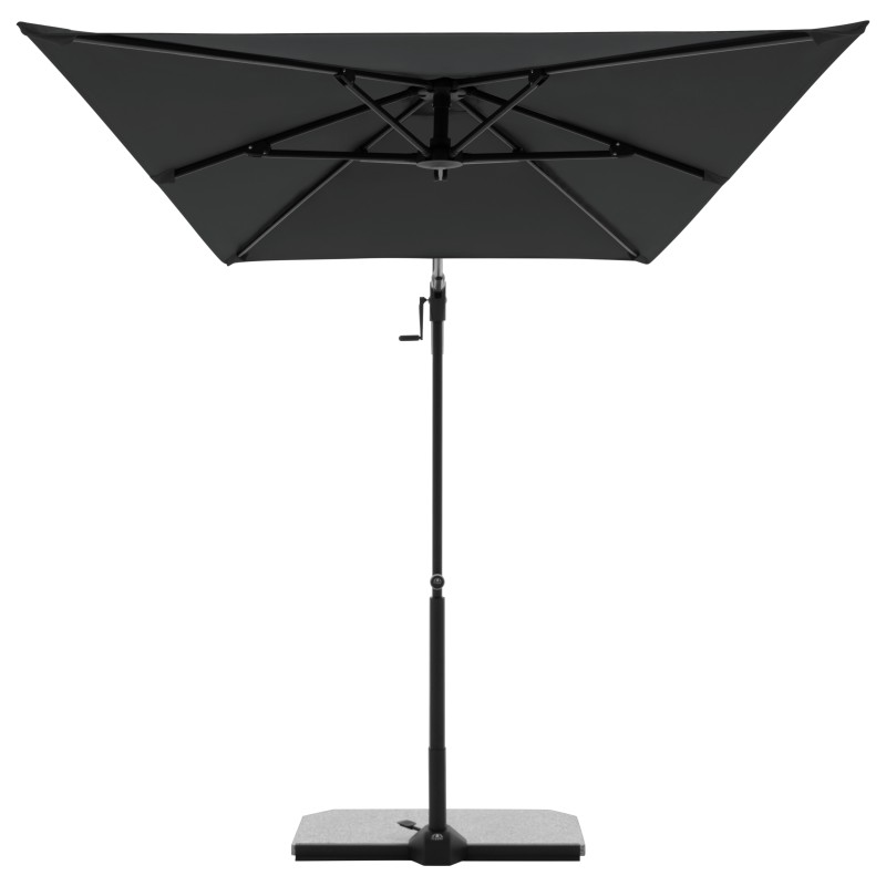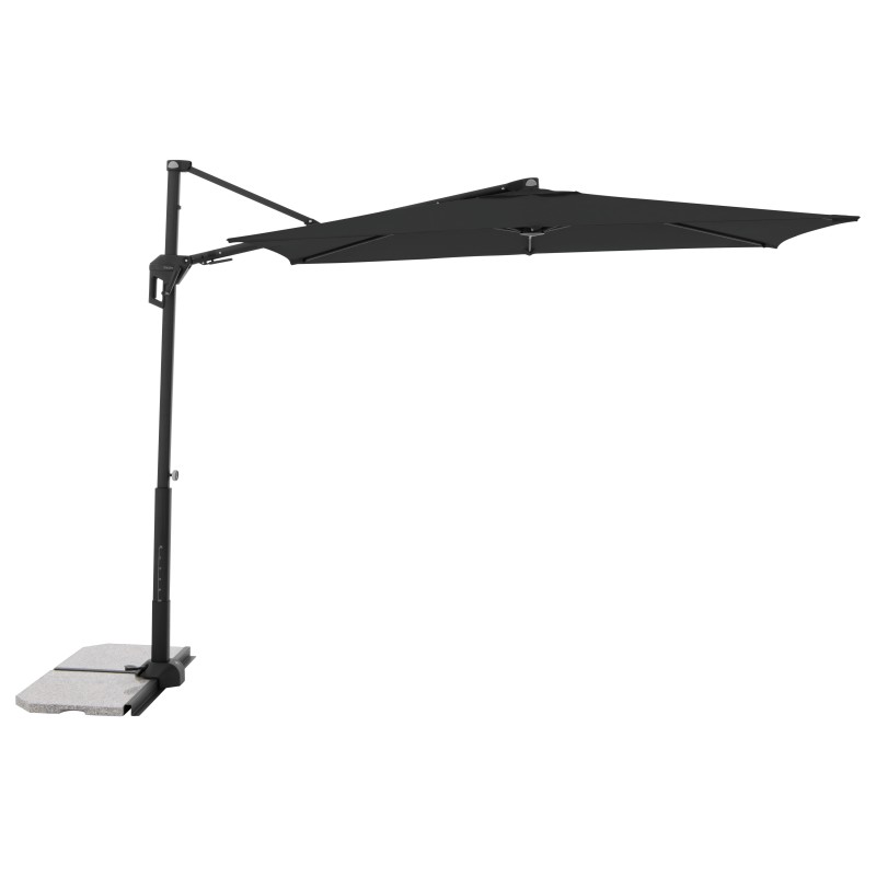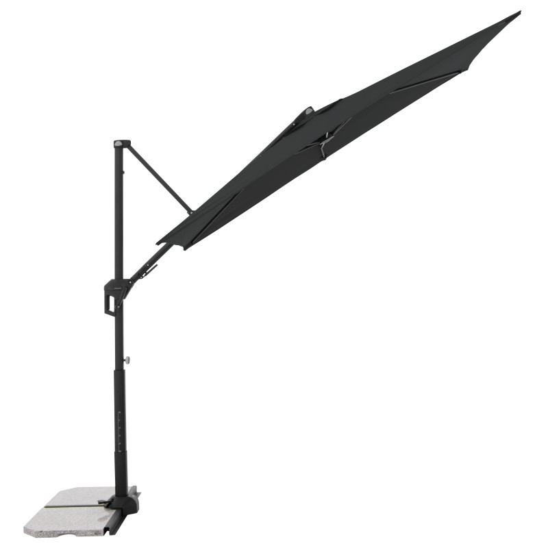 Moderní slunečník s hliníkovou konstrukcí v antracitové barvě je ideální na balkón či terasu. Snadné a pohodlné otevření a zavření slunečníku díky kličkovému mechanismu. Slunečník je výškově nastavitelný. Dá se přizpůsobit pohybu slunce během dne, otáčí se o 360°, naklápí se axiálně na obě strany a může být nastaven pod úhlem dozadu a tak se optimálně přizpůsobuje pohybu slunce. Potah je vyroben ze 100% PET recyklované polyesterové tkaniny a má UV ochranu 50+. Touto novou kolekcí ""GREEN EDITION"" následujeme trend udržitelnosti materiálů a výrobků.