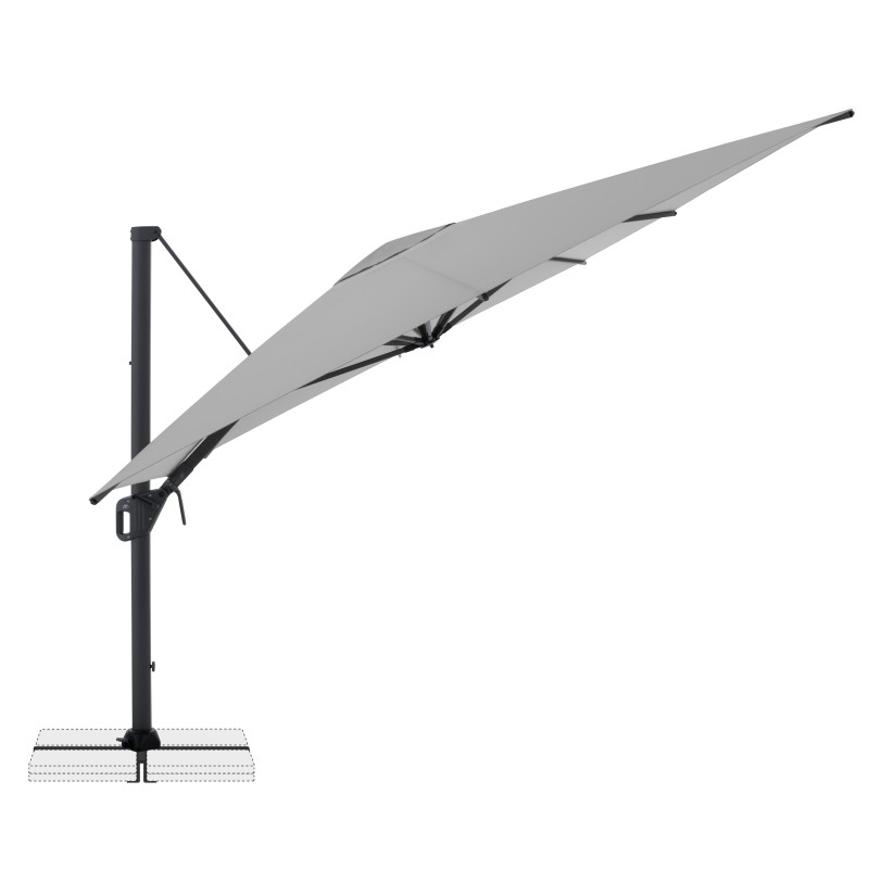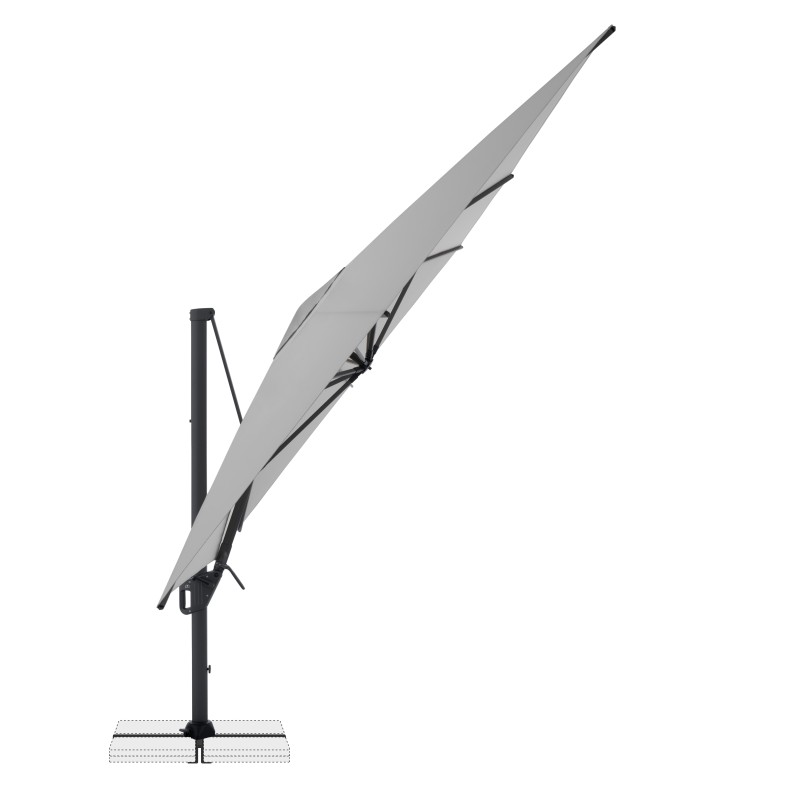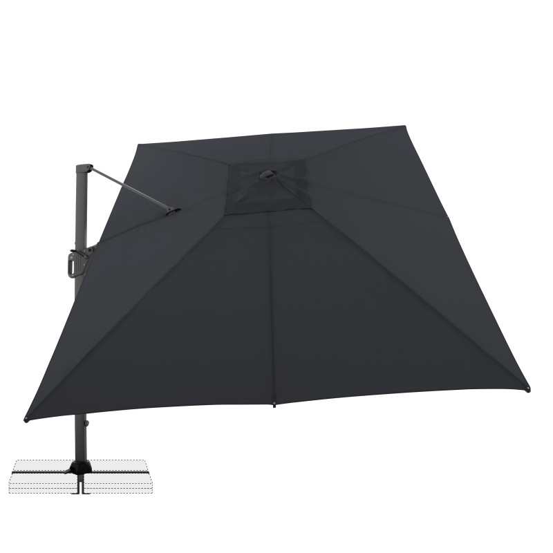 LIFE 300 x 400 cm je velice všestranný a vysoce kvalitní slunečník s pevným hliníkovým a ocelovým rámem. Obdélníkový tvar střechy je obzvláště vhodný pro zastínění zahradního nábytku. Kromě toho se slunečník dá přizpůsobit pohybu slunce během dne, protože je možné jej otočit o 360°, natočit axiálně na obě strany a může být nastaven pod úhlem dozadu, čímž se optimálně přizpůsobuje pohybu slunce. Potah je vyroben z polyesterové tkaniny odpuzující vodu s dobrou UV ochranou 50+.