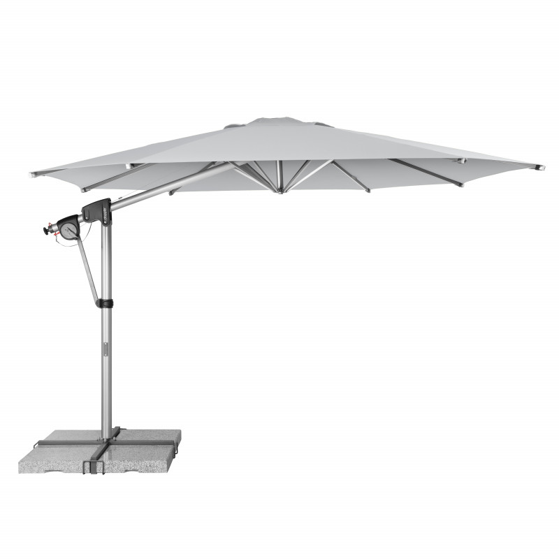 Protect 400P je multifunkční slunečník s boční nohou, který spolehlivě zastíní Vaše zahradní posezení. Slunečník má snadné ovládání kličkou, je otočný o 360 ° a oboustranně naklopitelný, takže jej lze dokonale přizpůsobit pohybu slunce. Konstrukce je vyrobená z kvalitního hliníku. Dodáváme včetně ochranného obalu.