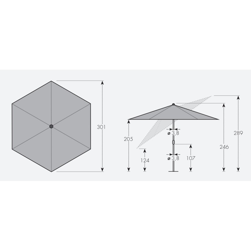 | Typ slunečníku | Se středovou tyčí |