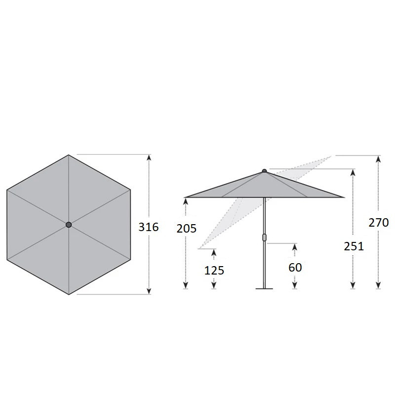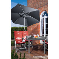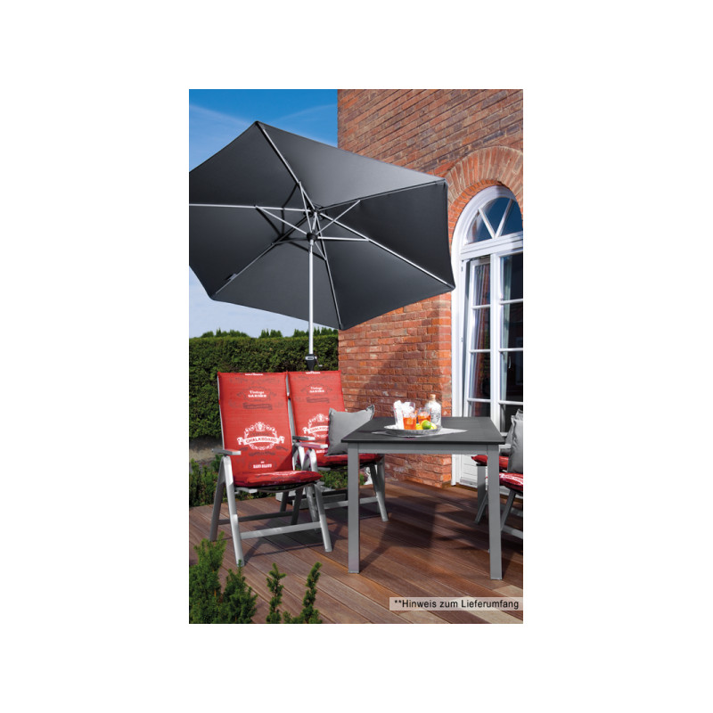 Tento slunečník je ideální na balkón či terasu. Snadné a pohodlné otevření a zavření slunečníku díky kličkovému mechanismu. Slunečník je možné naklopit, proto nabízí dostatečnou ochranu proti slunci. Vodoodpudivý polyesterový potah je snímatelný a je možné ho prát v ruce. Potah je k dispozici v různých barvách a má dobrou ochranu před UV zářením 50+.