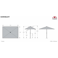 Slunečník má stabilní ocelovou konstrukci v antracitové barvě s ručním otevíráním a naklápěcím kloubem se 3 polohami naklopení. Potah je vyroben ze 100% PET recyklované polyesterové tkaniny a má dobrou UV ochranu 50+. Touto novou kolekcí ""GREEN EDITION"" následujeme trend udržitelnosti materiálů a výrobků.