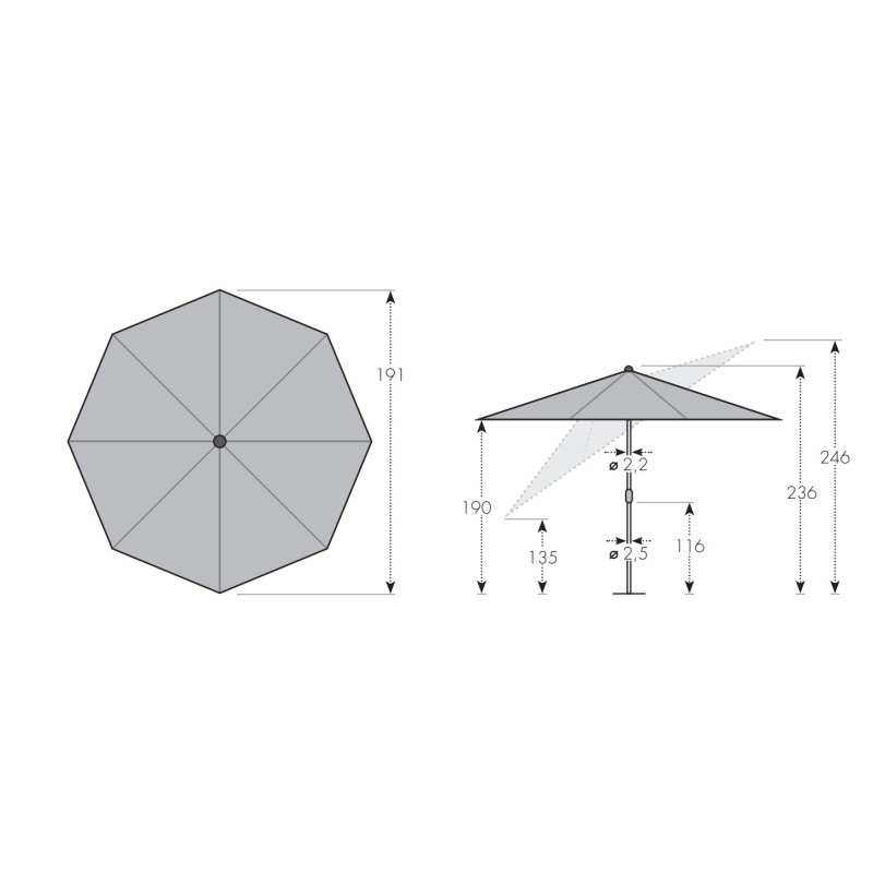 Slunečník disonuje komfortní funkcí naklopení střechy. Slunečník je možné výškově nastavit.