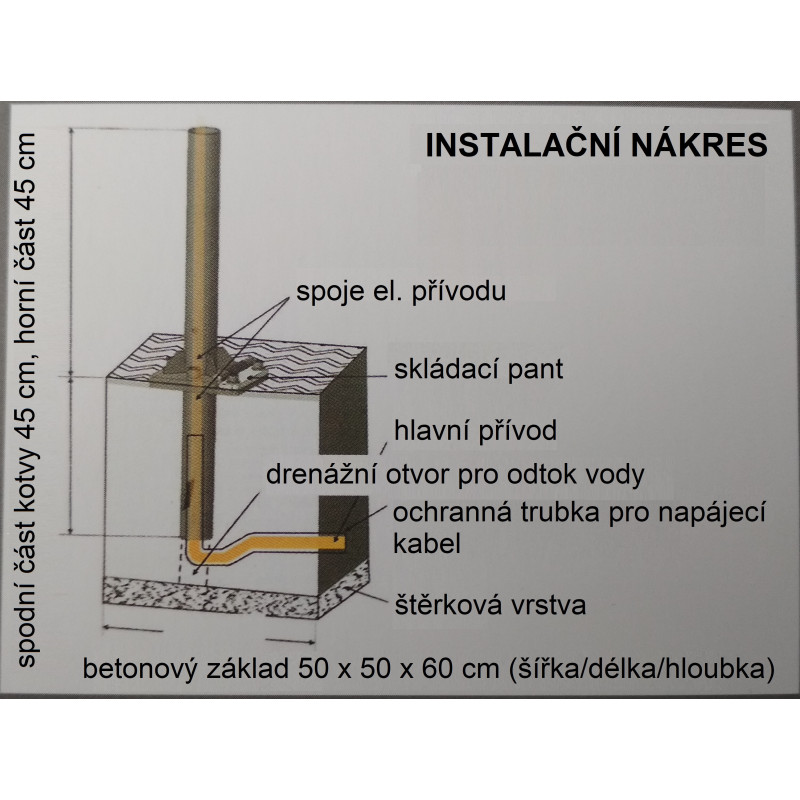 Praktická kotva na zabetonování určená pro slunečník Goliath 5 x 5 m.