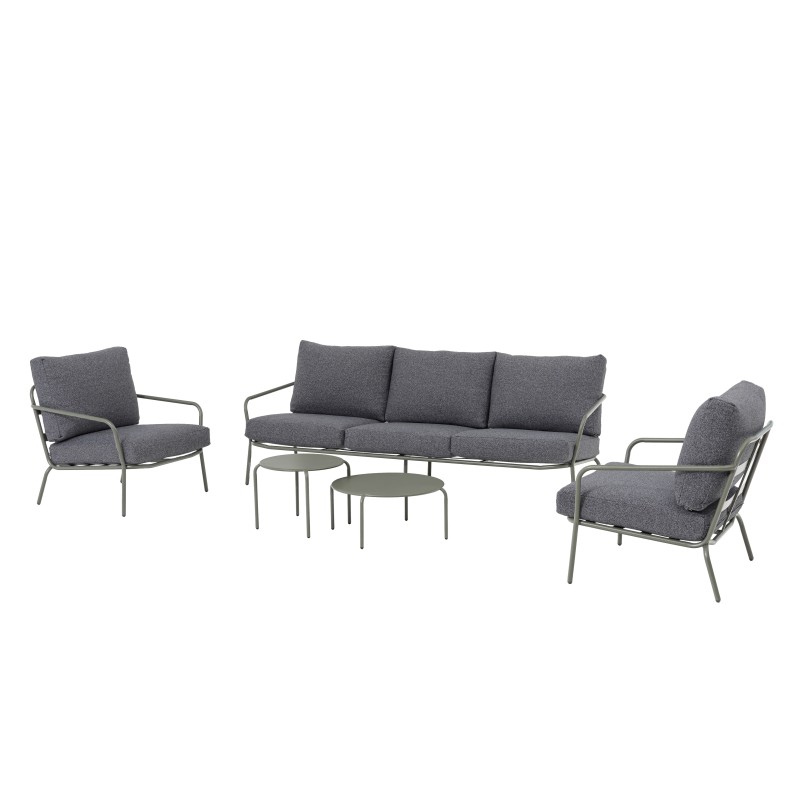 Calista Set vám poskytne prostornost a pohodlí, protože zahrnuje 3-místnou pohovku a dvě stylová křesla, což znamená, že máte dostatek místa pro všechny. Vysoké sedací a opěrné polštáře zajišťují, že se budete cítit jako v obýváku i na čerstvém vzduchu. Ocelová konstrukce v zelené barvě dodává soupravě moderní vzhled a stabilitu.