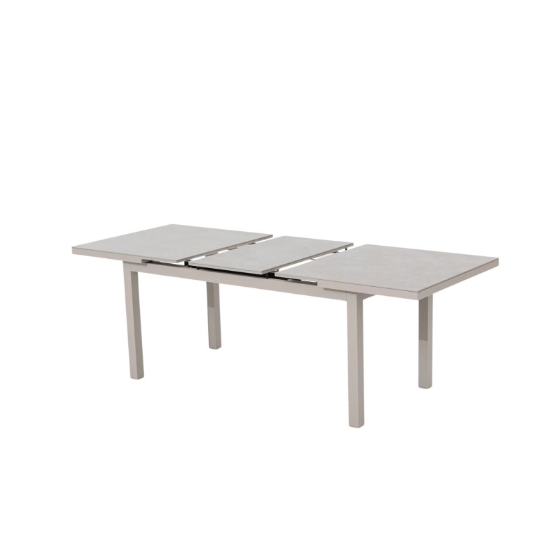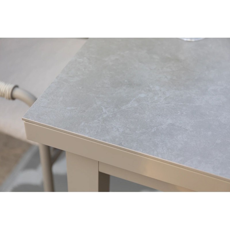 Zahradní rozkládací stůl VELIA s deskou ze spékaného kamene nejenže vypadá jako keramika, ale je pevnější a odolnější vůči skvrnám, poškrábání a změnám barvy, přičemž je tepelně i mrazuvzdorně odolný a snadno se udržuje. Navíc je stůl velmi snadný na údržbu. Tento stůl je nejen praktický, ale také šetrný k životnímu prostředí, což ho činí ideální volbou pro každého, kdo hledá udržitelné a kvalitní řešení pro svůj venkovní prostor.