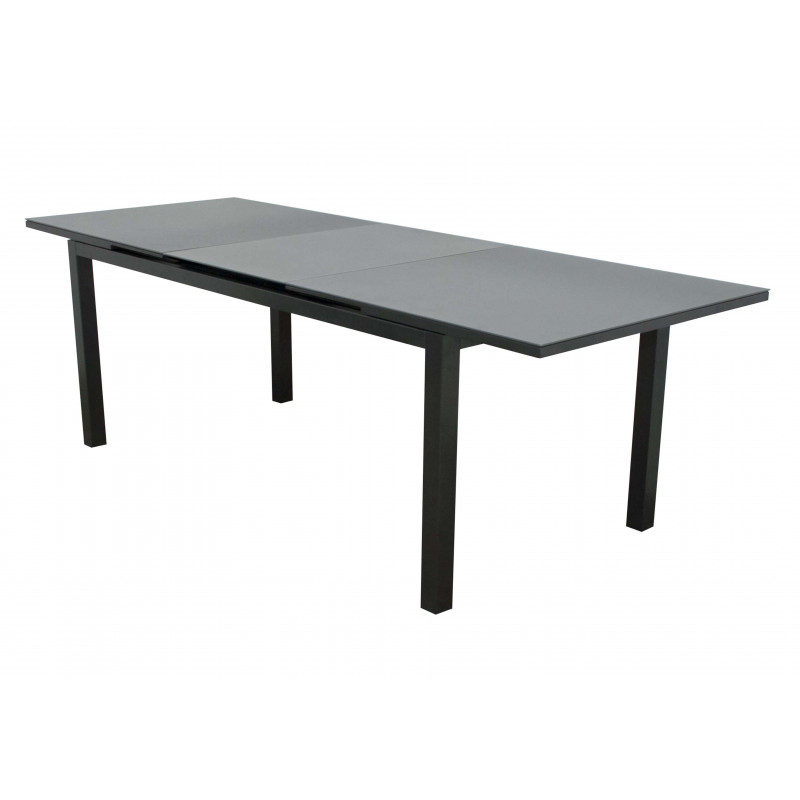 Zahradní rozkládací stůl FIRENZE je moderní venkovní nábytek minimalistického funkčního designu. Jedná se o spojení skla a kovu v elegantní celek. Stůl je stabilní a odolný. Má hliníkovou konstrukci v antracitové barvě. Deska stolu je z velmi odolného bezpečnostního tvrzeného skla v tmavě šedé barvě. Tloušťka skla je ca 5 mm. Díky strukturování nejsou na skle vidět stopy po poškrábání či otisky prstů.