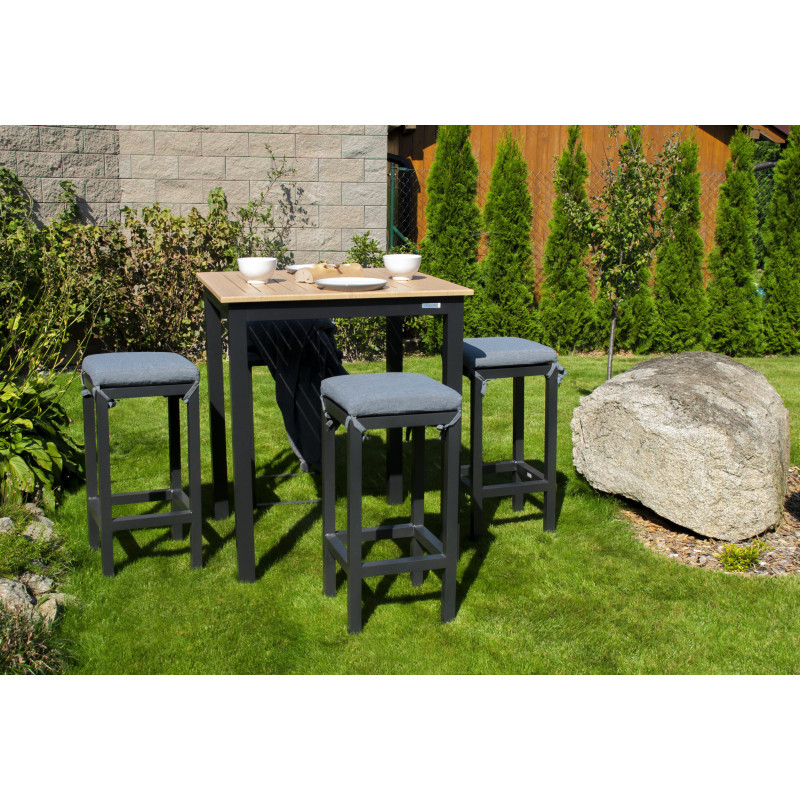 Barová židle EXPERT WOOD antracit je vhodná jako posezení k vyšším stolům a barovým pultům. Židle má stabilní hliníkovou konstrukci v antracitové barvě. Součastí židle je polstr v šedé barvě uchycený pomocí tkanic. Polstr je se zipem, potah lze sejmout a vyprat.
