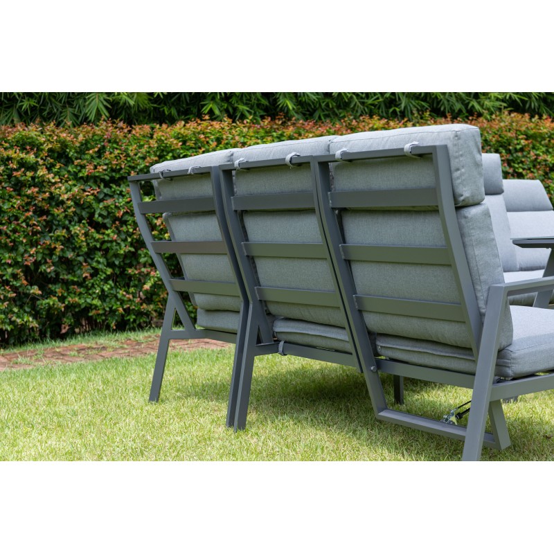 Zahradní sestava Como je ideálním řešením pro každého, kdo si chce užít dokonalý relax na terase či zahradě. Nabízí kombinaci moderního vzhledu, maximálního komfortu a praktické funkčnosti. Pohovka i křesla jsou vybavena polohovacími opěradly s pístovým mechanismem, díky kterému si snadno nastavíte ideální úhel sezení. U pohovky lze polohovat opěradla...