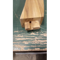 Tomuto kusu chybí vzpěra nohou, jedna noha je u šroubu vylomená, deska stolu je mírně nesouměrná (viz fotografie).