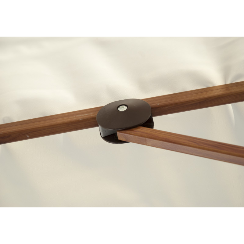 Čtvercový slunečník, který je ideální i na menší terasy. Celý rám je vyroben z robustního hliníku v imitaci dřeva. Díky doppler mechanismu otvírání jednou rukou je snadné otvírání i zavírání slunečníku. Potah slunečníku je bez volánu, s ventilem, odolný vůči povětrnostním vlivům, má vysokou stálobarevnost 7 a také poskytuje vysokou UV ochranu 80. Potah je snímatelný a lze jej prát v ruce.