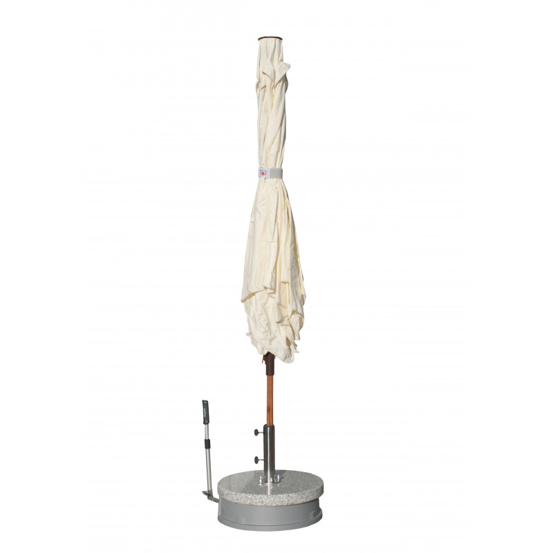 Vyrobený ze světle šedé žuly s 2 koly a rozšiřitelnou trolejovou rukojetí pro snadnou přepravu. Nerezová tyč má několik redukčních kroužků, které umožňují použití slunečníků s průměrem tyče 32–60 mm. Slunečník se kotví do tyče (trubka z nerezové oceli) pomocí dvou pojistných šroubů. Díky své hmotnosti 50 kg je zajištěna bezpečná stabilita i středně...
