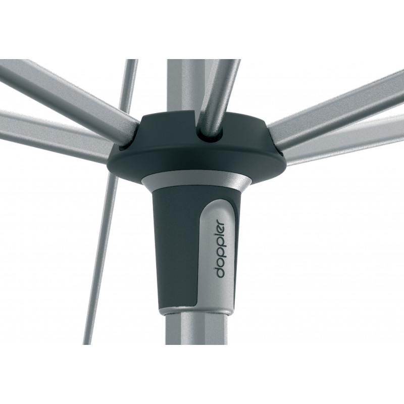 Tento moderní, lehký, stabilní slunečník je ideálním společníkem na balkón, terasu, nebo zahradu. Slunečník má kvalitní hliníkovou konstrukci a funkci automatického naklápěcího kloubu. Lze výškově nastavit. Potah je vyroben z 100% polyesterové tkaniny odolné povětrnostním vlivům s vynikající UV ochranou 80+. Má snímatelný potah pro ruční praní. Díky ventilačnímu otvoru ve střeše se pod slunečníkem nekumuluje horký letní vzduch.