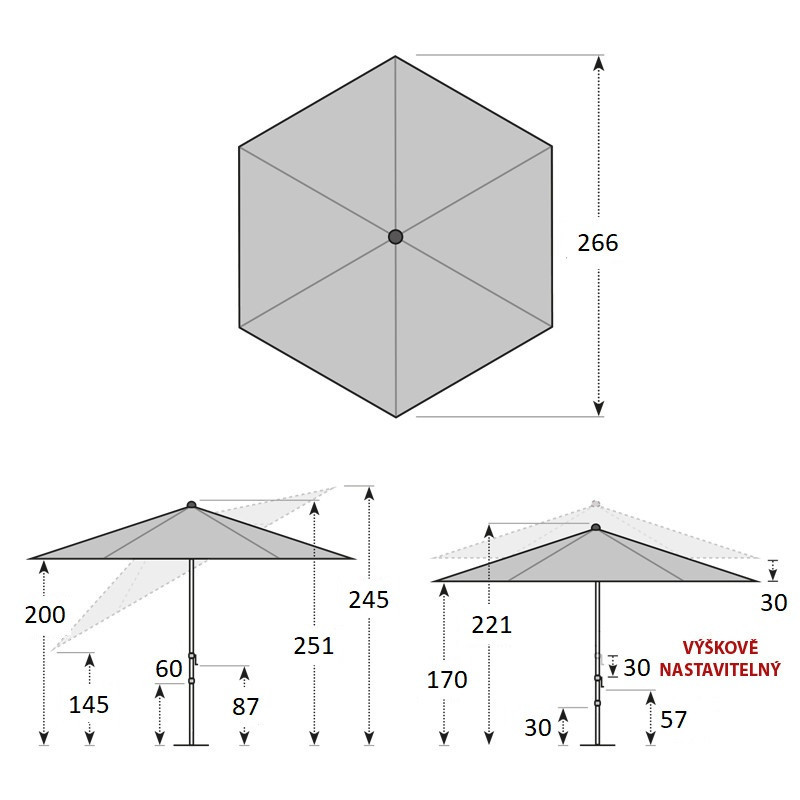 | Typ slunečníku | Se středovou tyčí |
